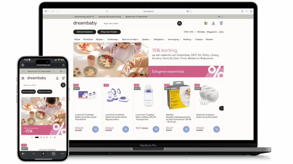 In België is de geboortelijst al jaren ingeburgerd, maar Dreambaby pakt het vandaag slimmer en gebruiksvriendelijker aan. Waar vroeger de geboortelijst losstond van de webshop, vormt het nu één vloeiend geheel. 🤝 Ouders stellen hun lijst eenvoudig online samen, vrienden en familie kunnen makkelijk schenken — volledig, gedeeltelijk of fysiek — en alle bijdragen komen terecht in een digitale baby wallet. Daarmee kopen ouders hun favoriete producten, zowel online als in de winkel.